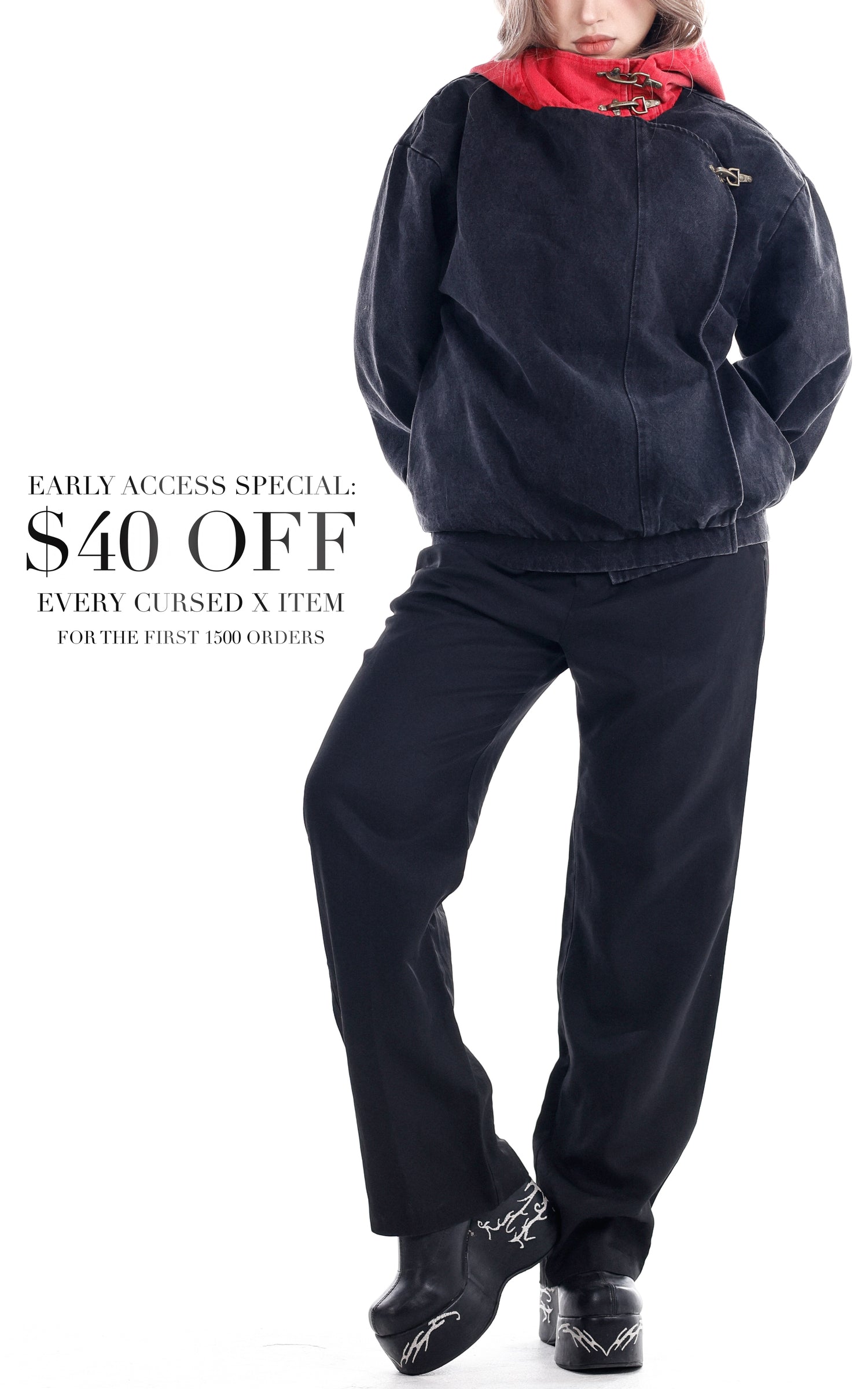 Drop Specials: The first 1500 early access members who place an order on the drop day can use a special discount to get $40 off every Cursed X item in their order. In addition to this, 5 orders placed within the first 10 minutes of the early access period & the first 25 limited edition Surprise T-Shirts will be fully refunded. The winners will be announced on Instagram.