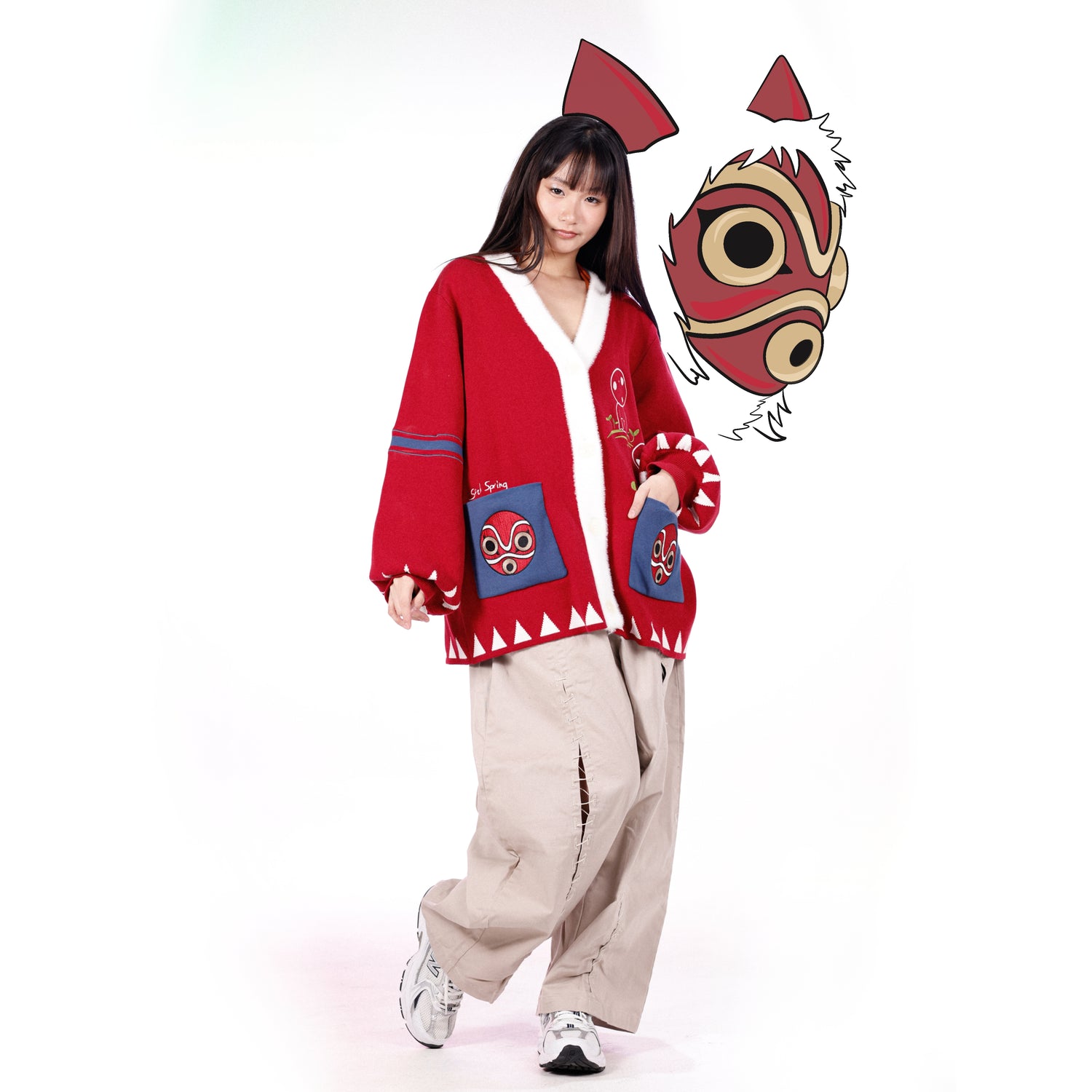 The vibrant red yarns used to knit this cardigan are cloudy soft but remain breathable which makes it perfect to wear on colder evenings. The carefully crafted art piece on the pocket will not wash out as they embroidered rather than just printed on the surface. The beautiful buttons made from enamel and real rust-free metal are also a subtle reference to the iconic movie. Because of the art and luxurious craftsmanship, you can comfortably wear it in public without being noticed as fan merch and yet it is bold enough to be positively recognized by fellow fans.